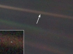 Знаменитый снимок планеты Земля "Pale Blue Dot", сделанный «Вояджером-1» в 1990 году. На фото запечатлена наша планета с расстояния 6 млрд. км.