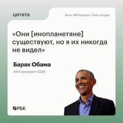 Бывший президент США Барак Обама в подкасте No Lie with Brian Tyler Cohen американского политблогера Брайна Тайлера Коэна заявил, что инопланетяне существуют. При этом, по его словам, в Зоне 51 (секретная база ВВС США в штате Невада. — РБК) «их не держат, а подземных баз там нет».