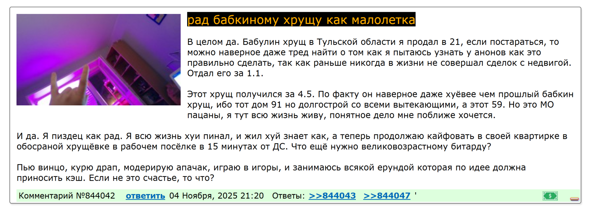 №873130 Перейти в тред 18 Декабря, 2025 09:28 Быстрый ответ>>873126 квартира то его