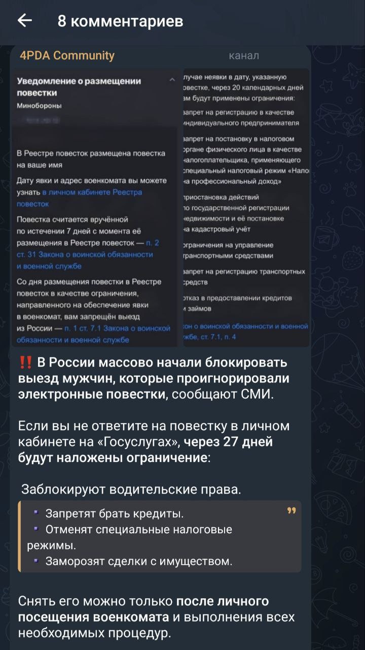 После получения повестки гражданину автоматически ограничивают выезд за границу, а через 27 дней вступают в силу дополнительные запреты: на вождение, открытие ИП, получение кредитов и другие действия.