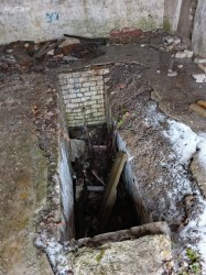 Здесь раньше валялся большой сейф. Его сначала открыли, а теперь он куда-то пропал.